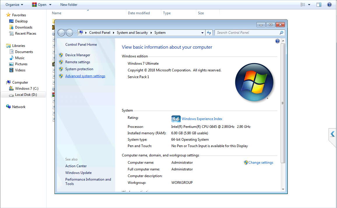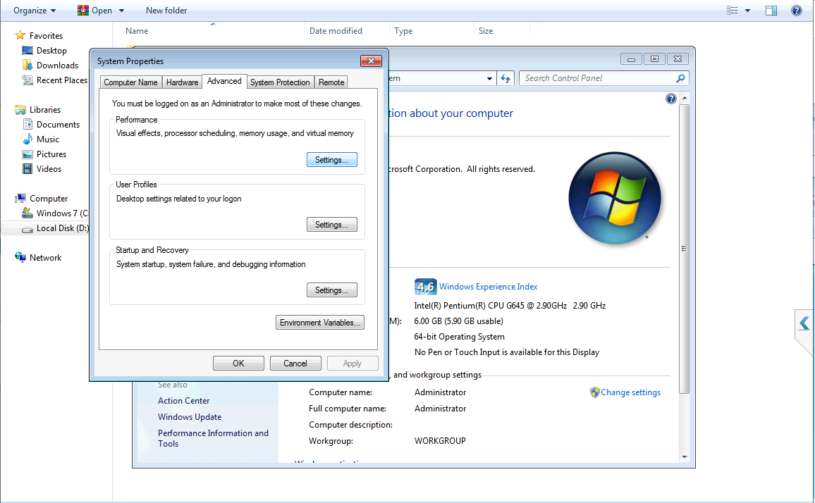 Cách Fix: Click phải vào My computer chọn Properties sẽ xuất hiện như ảnh bên dưới, sau đó ta chọn Advanced system settings