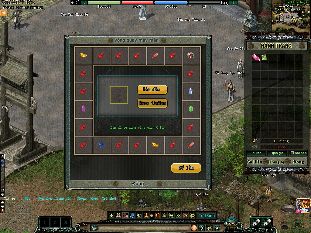 • Muốn quay vòng quay may mắn các bạn cần phải có Tử Khoáng.